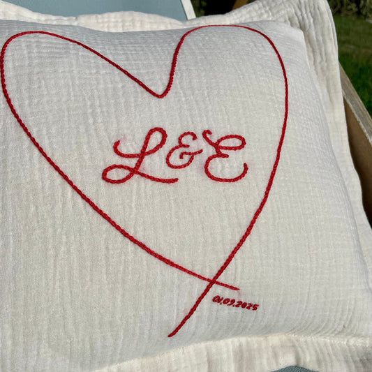 COUSSIN MARIAGE BRODÉ PERSONNALISÉ ÉCRU - INITIALES & DATE