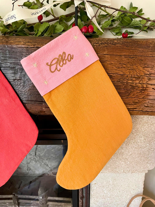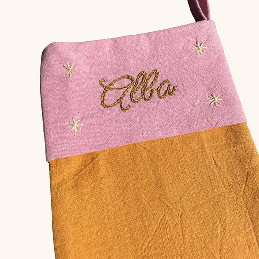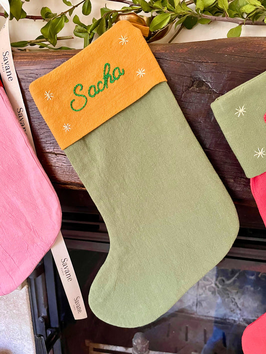 Découvrez la magie de Noël à travers nos chaussettes décoratives personnalisées, brodées à la main dans notre atelier français.