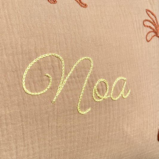 COUSSIN PERSONNALISÉ BRODÉ PRÉNOM & MOTIFS SAVANE - BEIGE SABLE